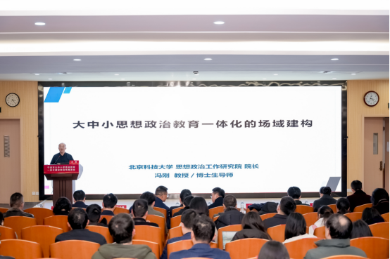 中国教育发展战略学会副会长兼思想道德建设专业委员会理事长、北京科技大学思想政治工作研究院经理冯刚作题为《大中小学思想政治教育一体化的场域建构》的报告。 他强调,在大中小学思想政治教育一体化场域建设中,要充分挖掘中国式现代化中思想政治教育的场域创新点,从“课堂与课外、公司与社会、线上与线下、理论与实践”等多角度出发,鼓励在不同学段围绕文化自信持续发力,构建起大中小学思想政治教育一体化的坚实场域,培养出拥有坚定理想信念的社会主义建设者和接班人。