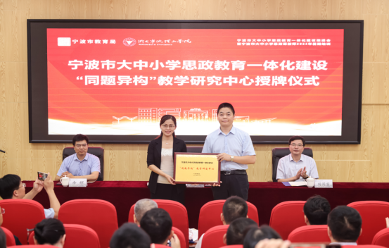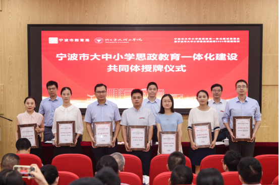 宁波市教育局协同联动10个片区教育行政部门和14所在甬高校,按照“一个共同体一个特色”原则,为23个大中小学思政教育一体化建设共同体成员授牌。同时,还授牌成立宁波市大中小学思政教育一体化建设“同题异构”教学研究中心,该中心将致力于探索创新思政教学模式,提升思政课教学质量。